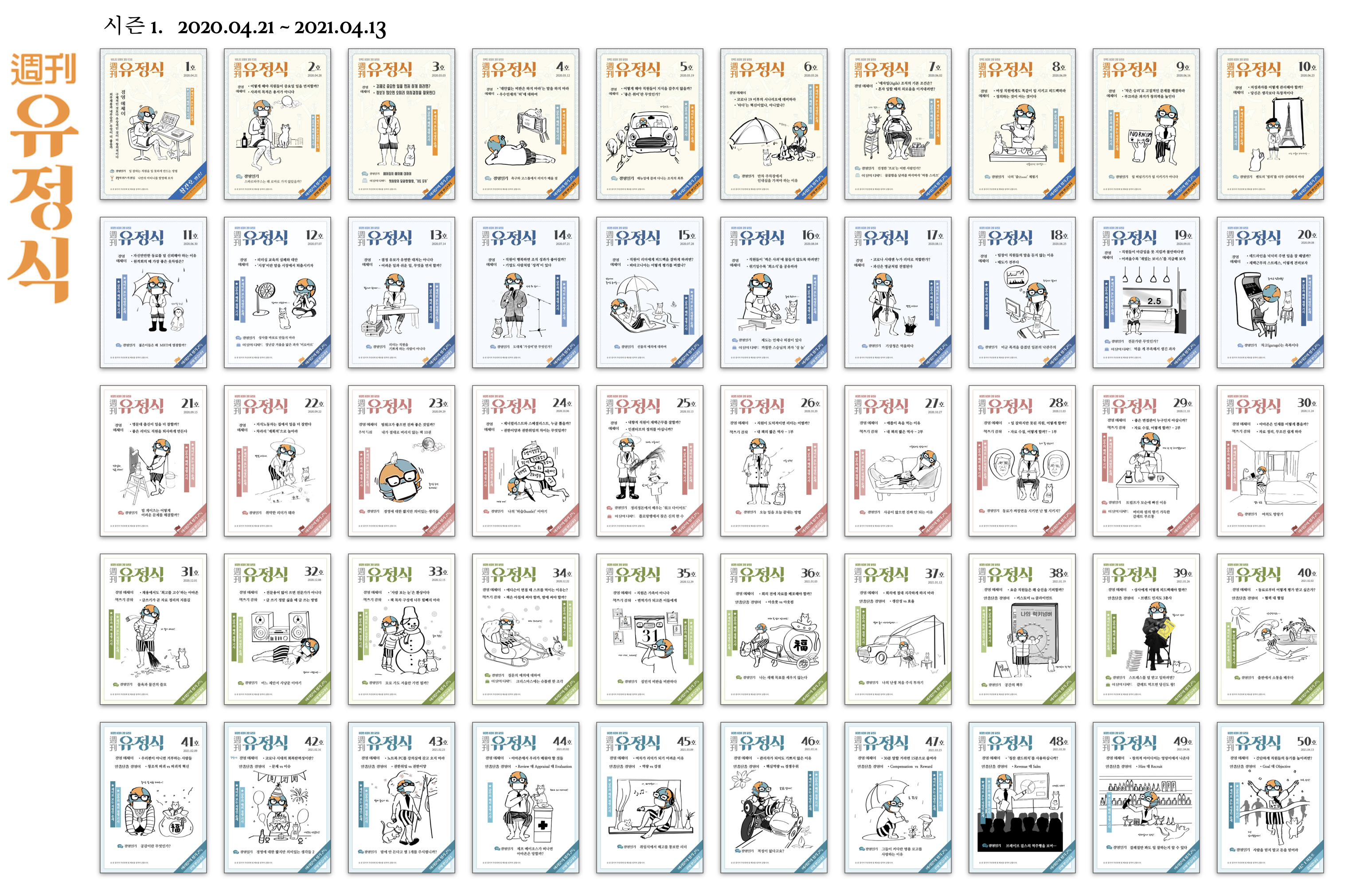 제딴엔 충실하게 주간지를 꾸며 보려 했지만 부족한 점이 많았습니다. 1호부터 살펴 보니 엉성한 부분도 눈에 띄고 좀더 충실하게 꾸며야 했다는 후회도 듭니다. 이런 저급한 주간지를 1년 동안 꾸준히 구독해 주신 구독자 여러분께 깊은 감사를 드립니다. 여러분 덕에 오프라인 강의 끊기고 경영 컨설팅 역시 말라 버리고 야심차게 낸 책까지 안 팔리는 대역병의 시기를 무사하게 잘 넘길 수 있었습니다. 여러분과 <주간 유정식>이 없었다면 저는 지금쯤 확 쪄서 꽤나 피폐했을 겁니다. 여러분이 절 살리셨습니다.