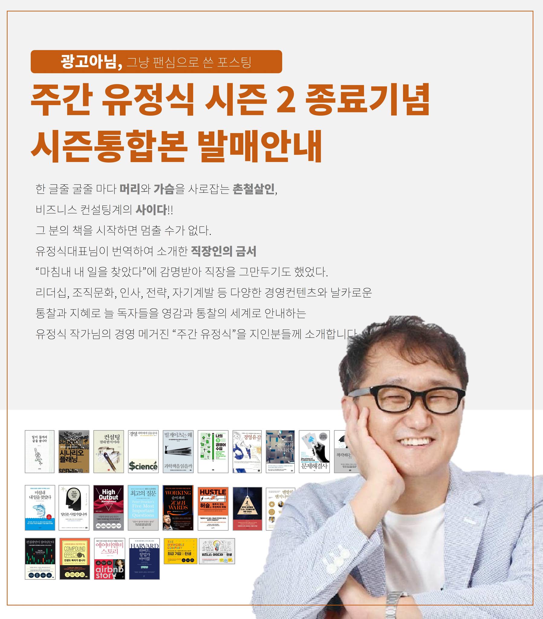 2021년 10월 5일, 51호를 시작으로 시즌 2가 발간되고 1년 2개월 가량 지나 드디어 <주간 유정식> 시즌 2의 종간을 맞이했네요. 언제 오나 했는데 오긴 오는군요. 엄살처럼 들리겠지만, 매주 컨텐츠를 만들고 주간지를 제작하는 일이 너무나 버거워서 포기하고 싶을 때가 많았습니다. 공적, 사적으로 힘든 일이 생길 때는 더욱 그랬죠. 하지만 “잘 읽었다”, “많은 도움이 된다”란 여러분의 말씀에 힘을 낼 수 있었고 100호까지 발간하게 됐네요. 저 개인의 역사에 있어 가슴벅찬 성취가 아닐 수 없습니다. 구독자 여러분의 응원과 열독 덕분입니다.
