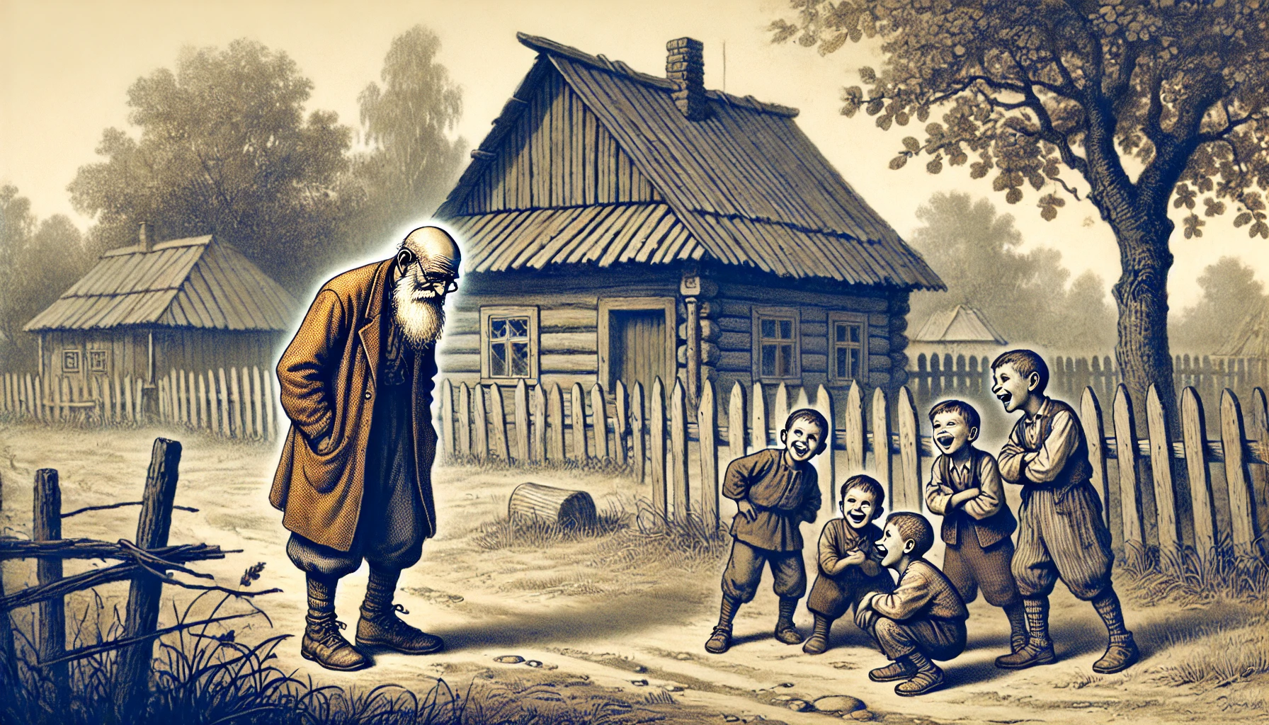 어느 마을에 한 노인이 혼자 살고 있었습니다. 오랜 기간 집 안에서만 은거하며 지낸 노인은 행색이 남루했고 어딘가 모르게 기이한 면모를 풍겼습니다. 그래서인지 동네에 사는 10살 짜리 철 모르는 꼬마들은 그런 노인을 놀려대기 일쑤였습니다. 아이들은 방과후 집으로 가는 길에 노인의 집 앞에서 노인의 이상한 면모에 대해 비웃곤 했습니다. 어느 날 오후, 노인은 밖에서 아이들이 자신을 가리키며 못생기고 바보 같은 대머리라고 크게 조롱하는 소리를 들었습니다.