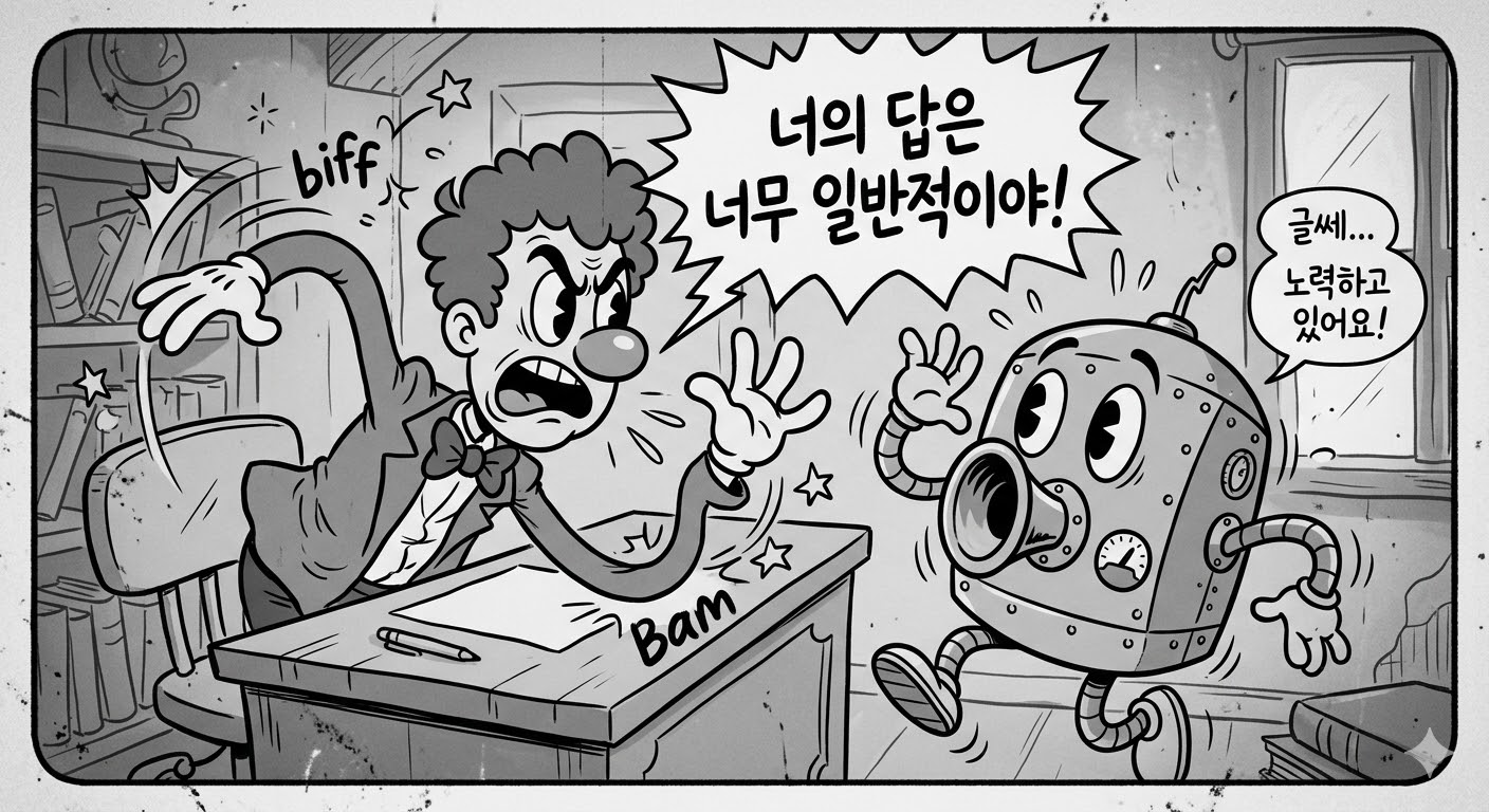 오늘은 AI의 답을 천천히 읽어보고 이렇게 말하는 연습을 해 보세요. "방금 네가 준 답변은 너무 일반적이야. 업계의 상식을 깨뜨리면서도 실행 가능한 독특한 대안 3가지만 다시 제시해." AI를 '현자'로 보지 말고 여러분과 치열하게 논쟁하는 '토론 상대'로 설정하기 바랍니다. (끝)