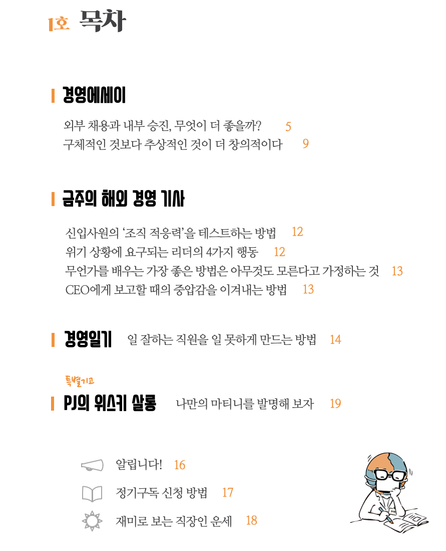 마음의 준비를 단단히 했지만 막상 창간준비호를 덜컥 공개하고 나니 살짝 겁이 났습니다. 15년 가까이 블로그 활동을 해오고 있기에 글을 ‘생산’한다는 게 큰 부담은 아닙니다. 그보다는 정기구독자분들 각자의 기대치에 맞는 컨텐츠를 과연 제공할 수 있을지 걱정이 되더군요. 1인기업부터 대기업 임원까지, 비영리기관부터 제조업, 서비스업, 첨단 IT 기업까지, 연구개발 직무부터 인사, 전략, 영업, 마케팅까지 다양한 분들이 <주간 유정식> 정기구독을 신청해 주셨습니다. 여러분이 신청란에 달아주신 의견을 보면 활동분야가 각기 다른 만큼 원하는 컨텐츠 주제 역시 다양하더군요. 최대한 여러분의 니즈를 만족시키려고 노력하겠지만 제가 모든 컨텐츠를 책임지다보니 부득이 커버하지 못하는 영역이 있을 거라는 점은 미리 양해의 말씀을 구합니다.