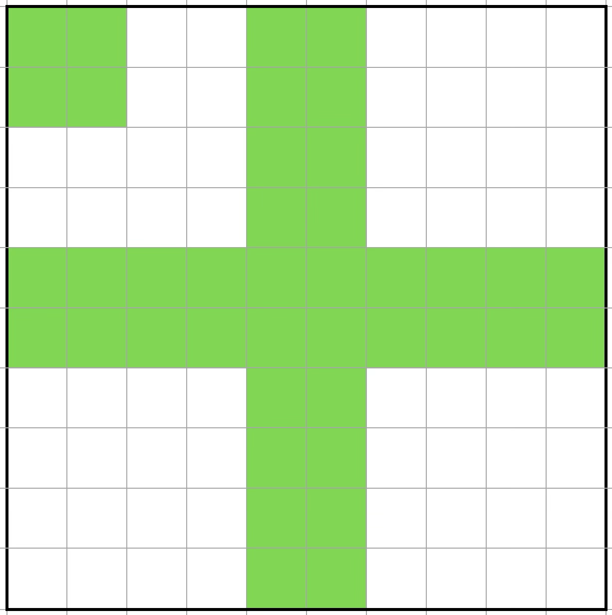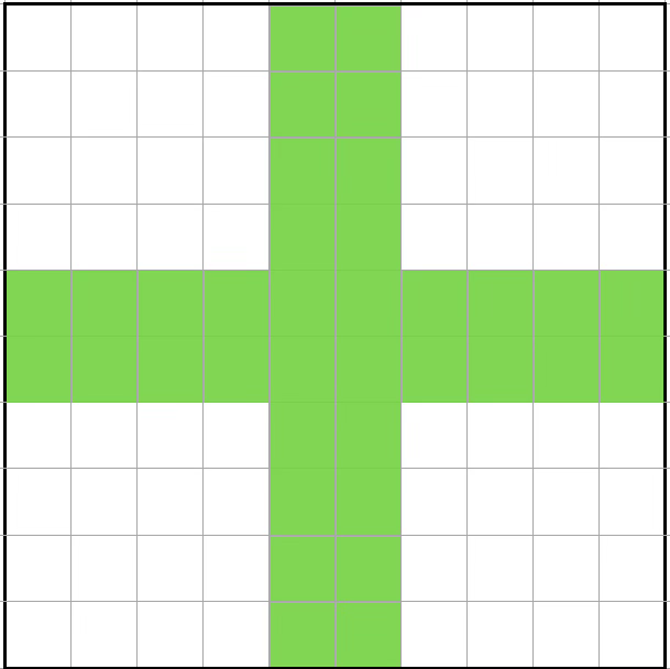 아래의 그림이 컴퓨터 모니터에 띄워져 있다고 가정해 보세요. 각 셀을 클릭하면 녹색으로 바뀌거나 흰색으로 바뀌는데요, 만약 진행자가 “이 그림을 상하좌우 대칭이 되도록 만들라”고 지시한다면 여러분은 어디를 클릭하겠습니까? 오래 생각하지 말고 바로 떠올리기 바랍니다.